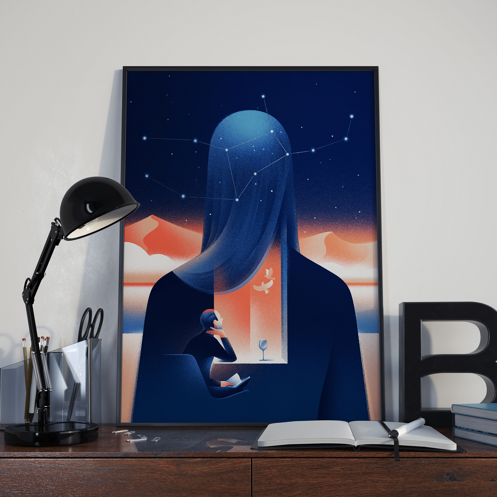 It's a personal project that started as a quick sketch during coffee break and finally evolved to a print dedicated to Virgo zodiac and all romantic dreamy minds. High quality Giclee print. Contact me to order.